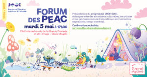 Le Mardi 5 mai 2026 à partir de 17h30 à la Cité Internationale de la Bande Dessinée et de l'Image, nous vous convions au Forum 2026 des Parcours d'Éducation Artistique & Culturelle.